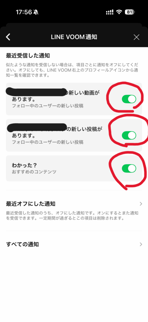 LINEの「○○の新しい動画があります。」の通知を消したい!LINE VOOMの通知を削除しよう